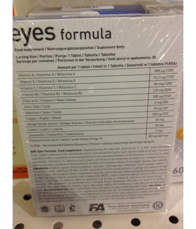 Если ваше зрение стало менее острым, а глаза все чаще болят от нагрузки, не стоит ждать усугубления проблемы. Мы предлагаем купить комплекс витаминов и минералов FA Eyes Formula (30 tab), разработанный специально для улучшения зрительной функции. Препарат снимает усталость глаз и другие неприятные симптомы, возникающие в результате длительной работы за компьютером, чтения, вождения, рукоделия и других занятий, требующих высокой концентрации. Айс Формула (30 таблеток) от Фитнес Авторити содержит витамины А, С, Е, В2 и микроэлементы – цинк, селен, медь.Действие препарата FA Eyes Formula (30 tab)Пищевая добавка включает целый ряд полезных веществ и оказывает на организм комплексное воздействие. В результате регулярного приема FA Eyes Formula (30 tab):нормализуется зрение;укрепляется иммунитет;улучшается работа ЦНС;ускоряется синтез белка;нивелируется действие свободных радикалов;исчезает чувство усталости.На сайте нашего интернет-магазина вы можете купить добавку FA Eyes Formula (30 tab) по оптимальной цене. В каталоге представлены витамины и минералы надежных производителей. Реализуемая продукция соответствует международным стандартам качества. Обратиться к менеджеру можно по телефону, через указанные на сайте мессенджеры или электронную почту.
