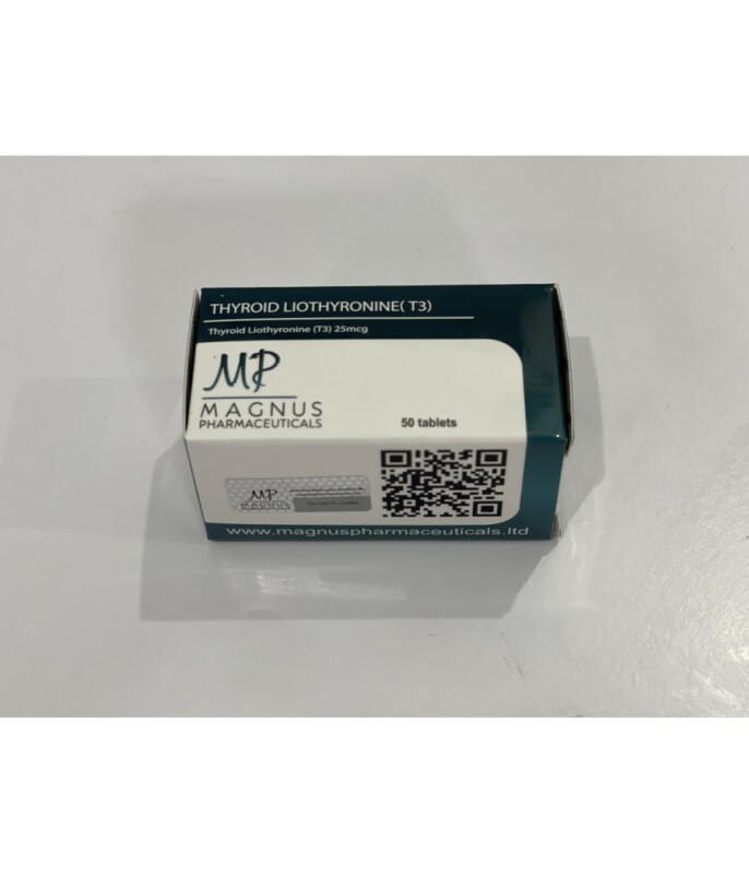 КупитьThyroid Liothyronine (T3) 25 mkg 50 tab (Magnus Pharmaceuticals)Лиотиронин представляет собой один из двух тиреоидных гормонов. Это вещество также известно под названием Т3. Второй гормон, синтезируемый щитовидной железой – Тироксин или Т4. По сути, он является прогормоном. Именно из него под воздействием особых ферментов синтезируется Т3, который и является самым сильным тиреоидным гормоном. В спорте он пользуется большой популярностью. Многие атлеты решают заказать Liothyronine Sodium для проведения мощных курсов сушки. Дело в том, что тиреоидные гормоны являются сильными жиросжигателями. При этом его можно считать достаточно безопасным средством для улучшения спортивных результатов. Если вы хотите купить Liothyronine Sodium, то вам предстоит строго следовать всем рекомендациям по приему этого медпрепарата. В противном случае могут проявиться побочные эффекты. Заметим, что цена Liothyronine Sodium выглядит привлекательно.Эффекты Трийодтиронинускоряет метаболические реакции;усиливает процесс теплопродукции;стимулирует деятельность нервной системы;обладает мощными жиросжигающими свойствами;подавляет аппетит.Соло курс ТрийодтиронинРекомендуемая суточная дозировка для атлетов любителей составляет 25-100 мкг. Всегда начинайте курс с минимальной дозировки. Если в течение нескольких дней побочные эффекты не проявились, то постепенно увеличивайте дозу до необходимой. Длительность курса составляет 1-2 месяца. После отмены препарата, необходимо сделать паузу продолжительностью не менее 3 недель. Только после этого можно начать проводить новый курс.Комбинирование препаратаДля увеличения эффективности курса сушки вы можете сочетать Liothyronine Sodium с другими препаратами. Наиболее популярными у атлетов связками является Йохимбин и Кленбутерол. При этом нередко билдеры используют в рамках курса сразу все эти медпрепараты. В результате эффективность использования Liothyronine Sodium резко возрастает. Однако мы не рекомендуем так поступать начинающим спортсменам из-за более высоких рисков развития побочек. Соло курс с участием Т3 для них является более предпочтительным выбором.ПКТ после курса ТрийодтиронинПосле отмены этого препарата проводить восстановительную терапию не нужно. В наш магазин могут обратиться не только жители Киева, но и других городов Украины: Львова, Запорожья, Одессы, Чернигова и т.д.
