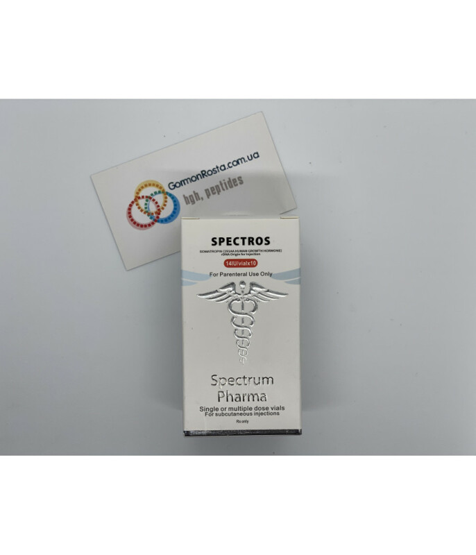 Купить гормон роста Spectros (Спектрос) в Украине!В этом разделе представлен качественный препарат от популярного европейского бренда. Если вас интересует быстрый набор массы, рельефная мускулатура или снижение веса – оцените Spectros гормон роста, купить оригинальный продукт по выгодной цене проще всего в нашем интернет-магазине. Мы не только предлагаем приемлемую стоимость фирменной спортивной фармацевтики, но и оказываем помощь с доставкой в любой регион Украины и за границу. Характеристики препарата Spectros – инъекционный гормон роста, который выпускает европейская компания Spectrum Pharma. Упаковка содержит 10 флаконов с сухим порошком, для инъекций его разбавляют бактерицидной водой. Ввод препарата осуществляется подкожно или внутримышечно – специальным инсулиновым шприцем, который в комплект поставки не входит. Каждый флакон Спектрос содержит 14 единиц гормона, при этом суточная доза соматотропина при активных силовых тренировках составляет 2-10 единиц. Препарат относится к ИГФ-1 прекурсорам и очень вариабелен, активность напрямую зависит от условий приема и поставленных целей. Купить гормон роста Spectros можно для повышения спортивных результатов или достижения других задач: быстрый набор мышечной массы; приглушение катаболизма межу занятиями в зале; сжигание жировых отложений в период сушки и для похудения; улучшение силовых показателей и выносливости атлета; естественная стимуляция синтеза жизненно важных белков и пептидов; увеличение сексуального влечения; усиленная выработка инсулиноподобного фактора роста; ускоренное восстановление после травм; укрепление сухожилий, суставов, сосудов и сердца.В отличие от многих других анаболических препаратов, гормон роста от Spectrum Pharma не задерживает воду в организме, не вызывает гепатотоксичность, не повышает кровяное давление и не оказывает андрогенного влияния на эндокринную систему. Наш интернет-магазин предлагает купить Spectros 10 фл (14 единиц) по выгодной цене и с доставкой. Мы реализуем только качественный продукт – в фирменной упаковке с защитным стикером и проверочным кодом.Также советуем прочесть следующие статьи :Как использовать гормон роста, пояснение "на пальцах"Инсулин - раскладываем по полочкам.Гормон роста для лечения суставов, связок и межпозвоночных грыж.Применение гормона роста в косметологии и медицине.Гормон роста, инсулин, Т4 и Т3