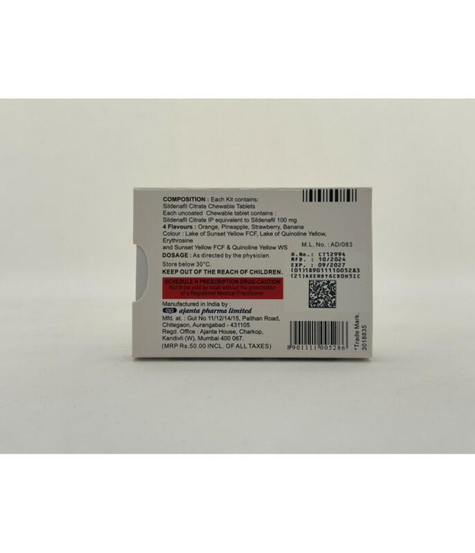 Купить виагру Kamagra-100 Chewable (4 tab) в Украине и КиевеKAMAGRA 100 CHEWABLE — это дженерик популярного средства для потенции Viagra, созданный на основе действующего вещества Силденафил цитрат. Производитель препарата — известная индийская фармацевтическая компания Ajanta Pharma.Таблетки выпускаются в виде рассасываемых пастилок со сладким или мятным вкусом. Цена на дженерик Камагра никак не зависит от этого. Основное действие препарата KamagraПрепарат разработан для мужчин, испытывающих трудности с достижением или поддержанием эрекции. Действие Камагры Софт основано на усилении притока крови к тканям пениса, что способствует естественной и устойчивой эрекции.Как и другие дженерики, KAMAGRA производится на другом заводе и отличается от оригинала в первую очередь страной и условиями производства.Показания к применению:эректильная дисфункция различной степени тяжести;легочная артериальная гипертензия;сниженная половая активность.Таблетку рекомендуется рассасывать под языком за 40–50 минут до предполагаемого полового контакта. Такой способ применения обеспечивает быстрое всасывание активного вещества в кровь.Эффект продолжается в среднем 5–6 часов. Для достижения максимальной эффективности рекомендуется избегать приема тяжелой пищи перед употреблением препарата.Рекомендованная дозировка KamagraСтандартная суточная доза составляет 100 мг Силденафила. Превышать ее не следует без консультации с врачом.KAMAGRA 100 CHEWABLE можно сочетать с препаратами, продлевающими половой акт, например с Дапоксетином.Важные предостережения и противопоказанияПрепарат имеет типичный для средств на основе Силденафила перечень ограничений. Прием Камагры запрещен в следующих случаях:совместное употребление с алкоголем (усиление побочных эффектов);возраст до 18 лет;пожилой возраст (принимать только под наблюдением врача);одновременное использование с другими средствами для лечения эректильной дисфункции.Как и любое лекарственное средство, KAMAGRA 100 CHEWABLE может вызвать побочные реакции. Среди наиболее распространенных: головная боль, покраснение кожи, нарушения пищеварения, головокружение.Перед началом приема обязательно ознакомьтесь с полной инструкцией или проконсультируйтесь со специалистом, чтобы минимизировать риски и получить ожидаемый эффект.