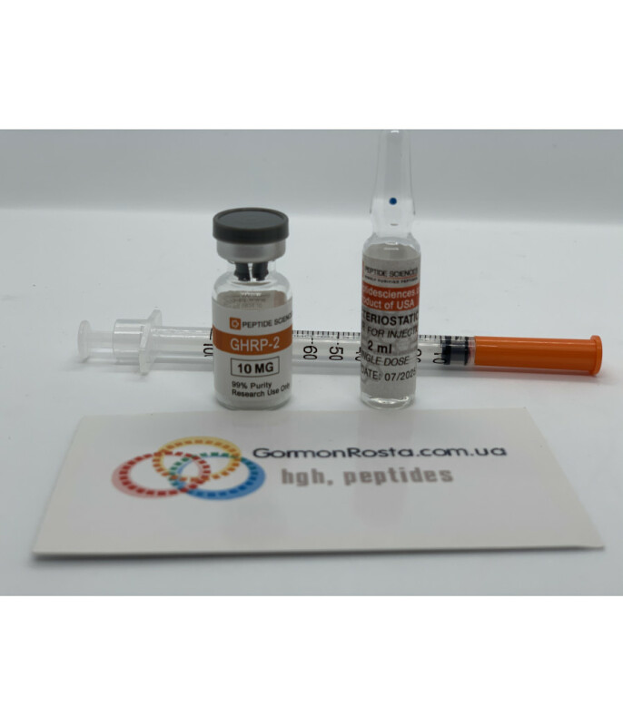 Купить GHRP 2 (10 mg)Качественный прирост мышечной массы у бодибилдера невозможен без выработки достаточного количества гормона роста, стимуляцию которого можно вызвать применением GHRP-2. Этот препарат пептидной группы, стимулирующий выработку собственного соматотропина, уже не раз доказывал свою эффективность.GHRP-2 купить может каждый желающий, кто серьезно занимается силовыми видами спорта, качественные пептиды по лучшим в Украине ценам заказывайте в нашем интернет-магазине. Мы предлагаем только сертифицированные препараты спортивного питания с гарантией качества от производителя.Эффект от применения пептидаКак показало множество исследований, после попадания ГХРП-2 в организм человека происходит активное стимулирование гипофиза, вызывающее увеличение уровня соматотропина в 10-15 раз. Ни одно другое средство такого результата не дает. Максимально уровень гормона роста удавалось увеличить не более, чем в три раза. Таким образом, применение пептида GHRP-2 приводит к: усилению секреции гормона роста; улучшению состояния кожи и укреплению костной ткани; увеличению мышечной массы и уменьшению жировой прослойки; снижению уровня холестерина в крови.Применение GHRP-2 следующее. Инъекция в дозировке один-два микрограмма на 1 кг массы тела делается натощак (минимум через 2 часа после последнего приема пищи) два-три раза в сутки. Желательно, чтобы пища перед приемом пептида ГХРП-2 содержала небольшое количество жиров и углеводов.В среднем продолжительность курса составляет один-два месяца, после чего необходимо на одну-две недели сделать перерыв, чтобы снять повышенную нагрузку на гипофиз. GHRP-2 абсолютно безопасен для организма и не вызывает побочных явлений, о чем свидетельствует 30-летняя практика применения препарата, в том числе и известными спортсменами. Сочетать пептид можно с другими стимуляторами роста, такими как аргинин, глютамин или GABA, что позволит без вреда для организма увеличить уровень гормона роста в несколько раз.Как сделать заказ препаратаЗаказать GHRP-2 можно по телефону или с помощью специальной формы обратной связи на сайте нашего интернет-магазина. Здесь же при помощи калькулятора вы можете рассчитать дозировку пептида. Если при изучении описания GHRP-2 у вас возникли вопросы, адресуйте их нашим консультантам, они с радостью вам помогут. Доставка препаратов спортивного питания осуществляется по всей Украине, а также в страны СНГ и ближнего зарубежья.В нашем магазине Вы можете купить GHRP 2 (10 mg) PeptideSciences от производителя!Своим клиентам мы предлагаем пептиды и другие товары практически по себестоимости!Цены на все снижены, поэтому оригинальный GHRP 2 сегодня можно купить дешевле, чем вдругих аналогичных магазинах!Также советуем прочесть следующие статьи :Как принимать пептиды?Принципы разведения и расчет дозировок.Способы разведения пептидов.Как составить собственый курс пептидов.Правила пользования пептидами.Курсы пептидов.