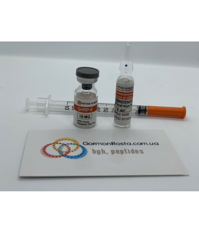Купить GHRP 6 (10 mg) в УкраинеДля прироста мышечной массы и выносливости каждому атлету необходимо увеличить анаболическую активность в мышечных тканях. В нашем интернет-магазине вы можете купить препарат от американского фармацевтического бренда PeptideSciences в упаковке по 10 мл. Этой дозы достаточно для нескольких инъекций – курс GHRP-6 рассчитывается исходя из массы тела (1-2 мкг на один килограмм).