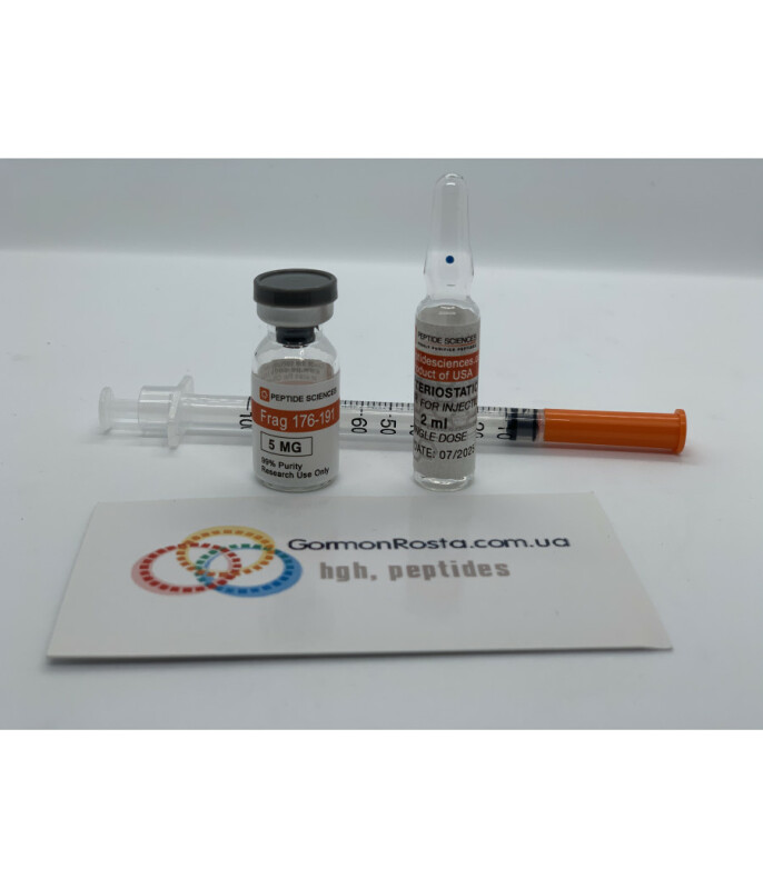 Пептид HGH 176 191 описаниеПептид hgh frag 176 191– это аналог фактора, который способствует высвобождению гормона роста. Это уникальный препарат, который помогает быстро сжечь лишний жир. Ученые из Америки провели исследования и доказали, что эффект, который вызывает ГР в виде уменьшения количества жировых отложений, контролирует определенный участок, который как раз и состоит из hgh 176 191. При приеме хгх фраг 176-191 необходимо учитывать несколько моментов, чтобы достичь желаемого результата: активное жиросжигание моментально не начнется. Все зависит от предела липолиза в организме. У одного человека этот процесс может происходить быстрее, чем у другого. Также не стоит увеличивать дозу препарата, чтобы усилить его действие;hgh 176 191 позволит достичь наилучшего эффекта, если совмещать его прием с диетой.Купить фрагмент HGH 176 191 в УкраинеВ нашем магазине GormonRosta представлен большой выбор гормоноподобных препаратов. Мы предоставляем клиентам только натуральную и безопасную продукцию. Жиросжигатель hgh frag 176 191 можно приобрести по разумной и выгодной цене. Препарат оригинален, поэтому побочных эффектов практически не имеет. В единичных случаях у человека может возникнуть легкая бессонница и небольшое жжение в месте проведенной инъекции. Если hgh frag 176 191 купить и принимать курсом, то вскоре можно будет заметить значительные изменения в организме: жир постепенно начнет уходить, мышечная масса же будет увеличиваться;л - иполитическая активность и метаболизм активизируются;Прием hgh 176 191 5mg положительно скажется и на общем самочувствии. Человек станет более энергичным.Преимущество hgh 176 191 5mg в том, что он уничтожает жир во всем организме, а не только в месте, где была проведена инъекция. Fragment HGH 176 191: цена курсаНаш интернет-магазин GormonRosta предлагает своим клиентам купить hgh fragment 176 191 по самой низкой цене за одну ампулу в Украине. Для оптовиков и для розницы у нас всегда есть интересные и выгодные предложения. Оплатить товар можно по наличному и безналичному расчету. Чтобы эффект от приема препарата был максимальным, hgh 176 191 курс необходимо пройти. Длительность его составляет от 2 до 3 месяцев, в зависимости от желаемого результата. Разработано две схемы приема препарата. Курс для начинающих: hgh 176 191 5mg fraghgh нужно принимать по 1000 мкг (разбивают на 3-5 приемов). Схема для достижения мгновенного результата: принимают препарат по 2000 мкг в сутки. Данную дозу нужно разбить на 3-5 приемов. Инъекции вводятся только подкожно.Как принимать пептид хгх фрагмент 176 191При приеме препарата стоит помнить, что оптимальная дозировка пептида hgh 176 191 составляет 1000 мкг, разделенные на несколько приемов. В нашем магазине Вы можете купить hgh frag 176-191 от производителя! Своим клиентам мы предлагаем пептиды и другие товары практически по себестоимости!Цены на все снижены, поэтому оригинальный hgh frag 176-191 сегодня можно купить дешевле, чем вдругих аналогичных магазинах!Также советуем прочесть следующие статьи :Как принимать пептиды?Принципы разведения и расчет дозировок.Способы разведения пептидов.Как составить собственый курс пептидов.Правила пользования пептидами.Курсы пептидов.